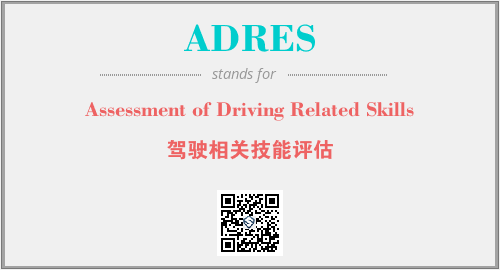 上述内容是“Assessment of Driving Related Skills”作为“ADRES”的缩写,解释为“驾驶相关技能评估”时的信息,以及英文缩略词ADRES所代表的英文单词,其对应的中文拼音、详细解释以及在英文中的流行度和相关分类、应用领域及应用示例等。