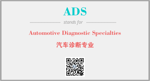 英文缩略词“ADS”经常作为“Automotive Diagnostic Specialties”的英文缩写来使用,中文表示:“汽车诊断专业”。本文将详细介绍英文缩写词ADS所代表英文单词,其对应的中文拼音、详细解释以及在英语中的流行度。此外,还有关于缩略词ADS的分类、应用领域及相关应用示例等。