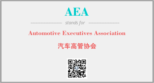 上述内容是“Automotive Executives Association”作为“AEA”的缩写,解释为“汽车高管协会”时的信息,以及英文缩略词AEA所代表的英文单词,其对应的中文拼音、详细解释以及在英文中的流行度和相关分类、应用领域及应用示例等。