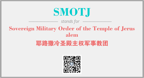 上述内容是“Sovereign Military Order of the Temple of Jerusalem”作为“SMOTJ”的缩写,解释为“耶路撒冷圣殿主权军事教团”时的信息,以及英文缩略词SMOTJ所代表的英文单词,其对应的中文拼音、详细解释以及在英文中的流行度和相关分类、应用领域及应用示例等。