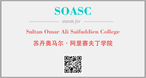 上述内容是“Sultan Omar Ali Saifuddien College”作为“SOASC”的缩写,解释为“苏丹奥马尔·阿里赛夫丁学院”时的信息,以及英文缩略词SOASC所代表的英文单词,其对应的中文拼音、详细解释以及在英文中的流行度和相关分类、应用领域及应用示例等。