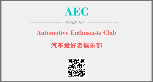 英文缩略词“AEC”经常作为“Automotive Enthusiasts Club”的英文缩写来使用,中文表示:“汽车爱好者俱乐部”。本文将详细介绍英文缩写词AEC所代表英文单词,其对应的中文拼音、详细解释以及在英语中的流行度。此外,还有关于缩略词AEC的分类、应用领域及相关应用示例等。