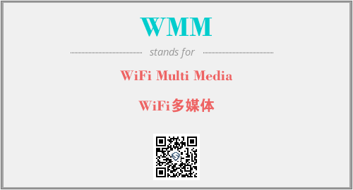 英文缩略词“WMM”经常作为“WiFi Multi Media”的英文缩写来使用,中文表示:“WiFi多媒体”。本文将详细介绍英文缩写词WMM所代表英文单词,其对应的中文拼音、详细解释以及在英语中的流行度。此外,还有关于缩略词WMM的分类、应用领域及相关应用示例等。