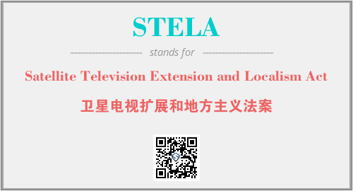 上述内容是“Satellite Television Extension and Localism Act”作为“STELA”的缩写,解释为“卫星电视扩展和地方主义法案”时的信息,以及英文缩略词STELA所代表的英文单词,其对应的中文拼音、详细解释以及在英文中的流行度和相关分类、应用领域及应用示例等。