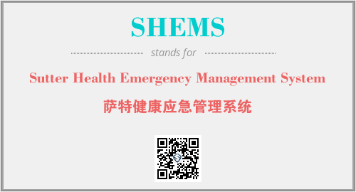 上述内容是“Sutter Health Emergency Management System”作为“SHEMS”的缩写,解释为“萨特健康应急管理系统”时的信息,以及英文缩略词SHEMS所代表的英文单词,其对应的中文拼音、详细解释以及在英文中的流行度和相关分类、应用领域及应用示例等。