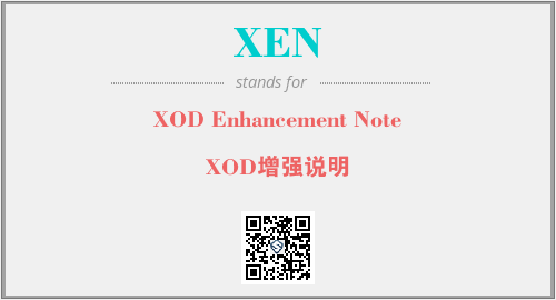 上述内容是“XOD Enhancement Note”作为“XEN”的缩写,解释为“XOD增强说明”时的信息,以及英文缩略词XEN所代表的英文单词,其对应的中文拼音、详细解释以及在英文中的流行度和相关分类、应用领域及应用示例等。