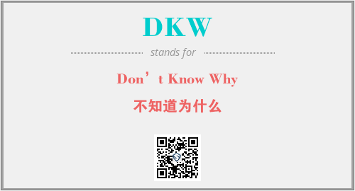 上述内容是“Don’t Know Why”作为“DKW”的缩写,解释为“不知道为什么”时的信息,以及英文缩略词DKW所代表的英文单词,其对应的中文拼音、详细解释以及在英文中的流行度和相关分类、应用领域及应用示例等。