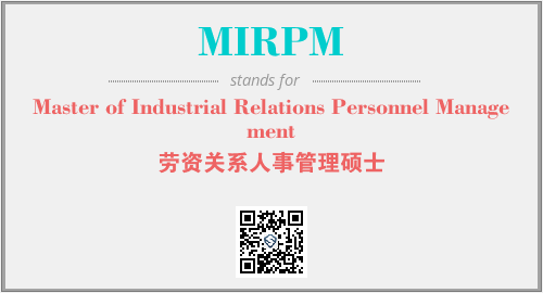 英文缩略词“MIRPM”经常作为“Master of Industrial Relations Personnel Management”的英文缩写来使用,中文表示:“劳资关系人事管理硕士”。本文将详细介绍英文缩写词MIRPM所代表英文单词,其对应的中文拼音、详细解释以及在英语中的流行度。此外,还有关于缩略词MIRPM的分类、应用领域及相关应用示例等。