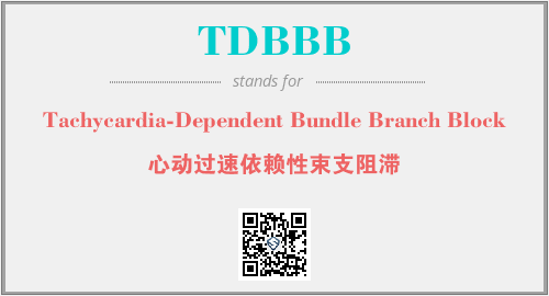 英文缩略词“TDBBB”经常作为“Tachycardia-Dependent Bundle Branch Block”的英文缩写来使用,中文表示:“心动过速依赖性束支阻滞”。本文将详细介绍英文缩写词TDBBB所代表英文单词,其对应的中文拼音、详细解释以及在英语中的流行度。此外,还有关于缩略词TDBBB的分类、应用领域及相关应用示例等。