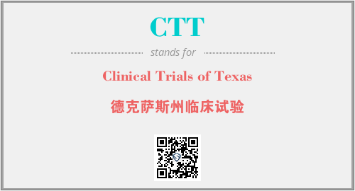 上述内容是“Clinical Trials of Texas”作为“CTT”的缩写,解释为“德克萨斯州临床试验”时的信息,以及英文缩略词CTT所代表的英文单词,其对应的中文拼音、详细解释以及在英文中的流行度和相关分类、应用领域及应用示例等。