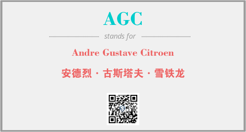 上述内容是“Andre Gustave Citroen”作为“AGC”的缩写,解释为“安德烈·古斯塔夫·雪铁龙”时的信息,以及英文缩略词AGC所代表的英文单词,其对应的中文拼音、详细解释以及在英文中的流行度和相关分类、应用领域及应用示例等。