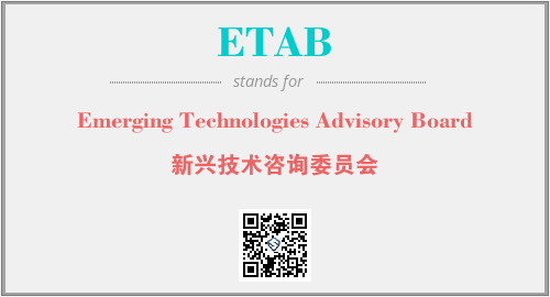 上述内容是“Emerging Technologies Advisory Board”作为“ETAB”的缩写,解释为“新兴技术咨询委员会”时的信息,以及英文缩略词ETAB所代表的英文单词,其对应的中文拼音、详细解释以及在英文中的流行度和相关分类、应用领域及应用示例等。
