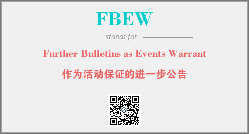 上述内容是“Further Bulletins as Events Warrant”作为“FBEW”的缩写,解释为“作为活动保证的进一步公告”时的信息,以及英文缩略词FBEW所代表的英文单词,其对应的中文拼音、详细解释以及在英文中的流行度和相关分类、应用领域及应用示例等。