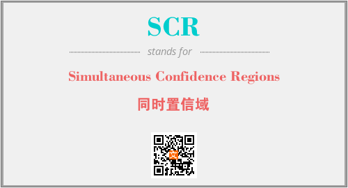 上述内容是“Simultaneous Confidence Regions”作为“SCR”的缩写,解释为“同时置信域”时的信息,以及英文缩略词SCR所代表的英文单词,其对应的中文拼音、详细解释以及在英文中的流行度和相关分类、应用领域及应用示例等。