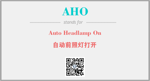 上述内容是“Auto Headlamp On”作为“AHO”的缩写,解释为“自动前照灯打开”时的信息,以及英文缩略词AHO所代表的英文单词,其对应的中文拼音、详细解释以及在英文中的流行度和相关分类、应用领域及应用示例等。