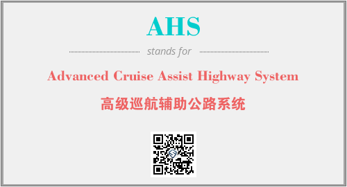 上述内容是“Advanced Cruise Assist Highway System”作为“AHS”的缩写,解释为“高级巡航辅助公路系统”时的信息,以及英文缩略词AHS所代表的英文单词,其对应的中文拼音、详细解释以及在英文中的流行度和相关分类、应用领域及应用示例等。