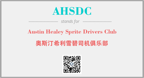 英文缩略词“AHSDC”经常作为“Austin Healey Sprite Drivers Club”的英文缩写来使用,中文表示:“奥斯汀希利雪碧司机俱乐部”。本文将详细介绍英文缩写词AHSDC所代表英文单词,其对应的中文拼音、详细解释以及在英语中的流行度。此外,还有关于缩略词AHSDC的分类、应用领域及相关应用示例等。