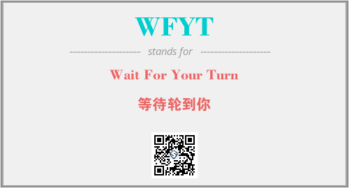 以上为Wait For Your Turn英文缩略词WFYT的中文解释,以及该英文缩写在英语的流行度、分类和应用领域方面的信息。