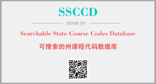 英文缩略词“SSCCD”经常作为“Searchable State Course Codes Database”的英文缩写来使用,中文表示:“可搜索的州课程代码数据库”。本文将详细介绍英文缩写词SSCCD所代表英文单词,其对应的中文拼音、详细解释以及在英语中的流行度。此外,还有关于缩略词SSCCD的分类、应用领域及相关应用示例等。