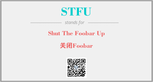 上述内容是“Shut The Foobar Up”作为“STFU”的缩写,解释为“关闭Foobar”时的信息,以及英文缩略词STFU所代表的英文单词,其对应的中文拼音、详细解释以及在英文中的流行度和相关分类、应用领域及应用示例等。
