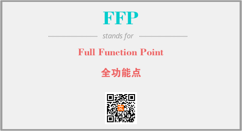 英文缩略词“FFP”经常作为“Full Function Point”的英文缩写来使用,中文表示:“全功能点”。本文将详细介绍英文缩写词FFP所代表英文单词,其对应的中文拼音、详细解释以及在英语中的流行度。此外,还有关于缩略词FFP的分类、应用领域及相关应用示例等。