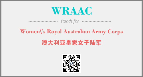 上述内容是“Women\'s Royal Australian Army Corps”作为“WRAAC”的缩写,解释为“澳大利亚皇家女子陆军”时的信息,以及英文缩略词WRAAC所代表的英文单词,其对应的中文拼音、详细解释以及在英文中的流行度和相关分类、应用领域及应用示例等。
