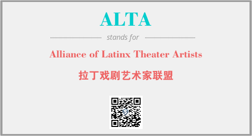 英文缩略词“ALTA”经常作为“Alliance of Latinx Theater Artists”的英文缩写来使用,中文表示:“拉丁戏剧艺术家联盟”。本文将详细介绍英文缩写词ALTA所代表英文单词,其对应的中文拼音、详细解释以及在英语中的流行度。此外,还有关于缩略词ALTA的分类、应用领域及相关应用示例等。