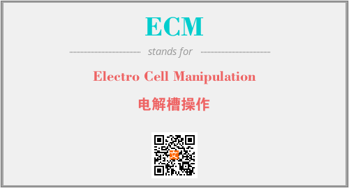 英文缩略词“ECM”经常作为“Electro Cell Manipulation”的英文缩写来使用,中文表示:“电解槽操作”。本文将详细介绍英文缩写词ECM所代表英文单词,其对应的中文拼音、详细解释以及在英语中的流行度。此外,还有关于缩略词ECM的分类、应用领域及相关应用示例等。