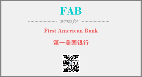 上述内容是“First American Bank”作为“FAB”的缩写,解释为“第一美国银行”时的信息,以及英文缩略词FAB所代表的英文单词,其对应的中文拼音、详细解释以及在英文中的流行度和相关分类、应用领域及应用示例等。