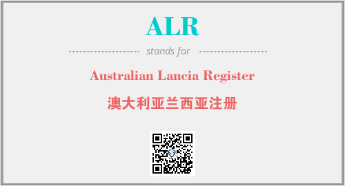 上述内容是“Australian Lancia Register”作为“ALR”的缩写,解释为“澳大利亚兰西亚注册”时的信息,以及英文缩略词ALR所代表的英文单词,其对应的中文拼音、详细解释以及在英文中的流行度和相关分类、应用领域及应用示例等。