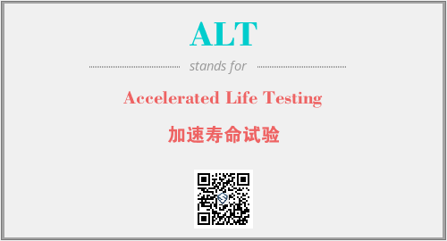 英文缩略词“ALT”经常作为“Accelerated Life Testing”的英文缩写来使用,中文表示:“加速寿命试验”。本文将详细介绍英文缩写词ALT所代表英文单词,其对应的中文拼音、详细解释以及在英语中的流行度。此外,还有关于缩略词ALT的分类、应用领域及相关应用示例等。