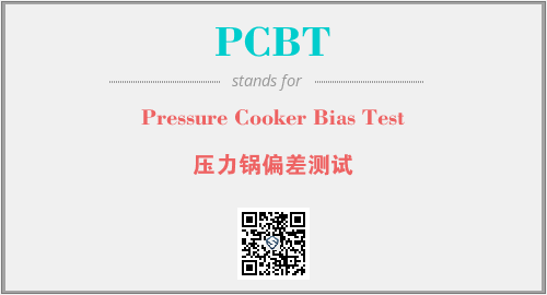 英文缩略词“PCBT”经常作为“Pressure Cooker Bias Test”的英文缩写来使用,中文表示:“压力锅偏差测试”。本文将详细介绍英文缩写词PCBT所代表英文单词,其对应的中文拼音、详细解释以及在英语中的流行度。此外,还有关于缩略词PCBT的分类、应用领域及相关应用示例等。