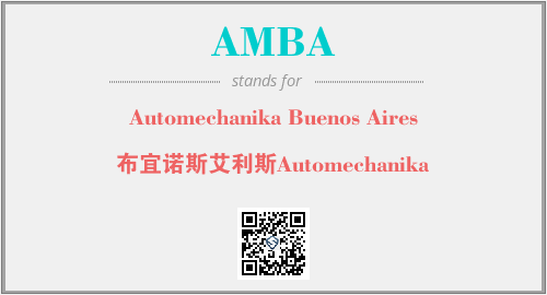上述内容是“Automechanika Buenos Aires”作为“AMBA”的缩写,解释为“布宜诺斯艾利斯Automechanika”时的信息,以及英文缩略词AMBA所代表的英文单词,其对应的中文拼音、详细解释以及在英文中的流行度和相关分类、应用领域及应用示例等。