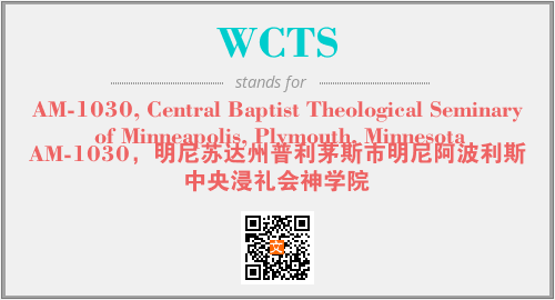 上述内容是“AM-1030, Central Baptist Theological Seminary of Minneapolis, Plymouth, Minnesota”作为“WCTS”的缩写,解释为“AM-1030,明尼苏达州普利茅斯市明尼阿波利斯中央浸礼会神学院”时的信息,以及英文缩略词WCTS所代表的英文单词,其对应的中文拼音、详细解释以及在英文中的流行度和相关分类、应用领域及应用示例等。