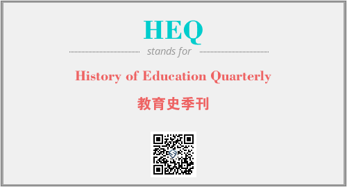 上述内容是“History of Education Quarterly”作为“HEQ”的缩写,解释为“教育史季刊”时的信息,以及英文缩略词HEQ所代表的英文单词,其对应的中文拼音、详细解释以及在英文中的流行度和相关分类、应用领域及应用示例等。