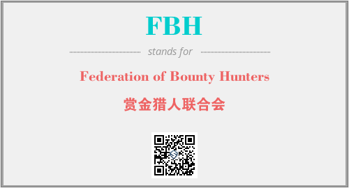 以上为Federation of Bounty Hunters英文缩略词FBH的中文解释,以及该英文缩写在英语的流行度、分类和应用领域方面的信息。
