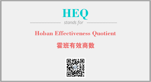 上述内容是“Hoban Effectiveness Quotient”作为“HEQ”的缩写,解释为“霍班有效商数”时的信息,以及英文缩略词HEQ所代表的英文单词,其对应的中文拼音、详细解释以及在英文中的流行度和相关分类、应用领域及应用示例等。