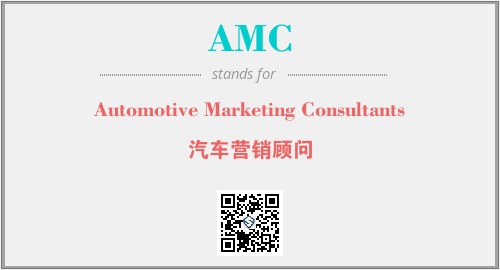 上述内容是“Automotive Marketing Consultants”作为“AMC”的缩写,解释为“汽车营销顾问”时的信息,以及英文缩略词AMC所代表的英文单词,其对应的中文拼音、详细解释以及在英文中的流行度和相关分类、应用领域及应用示例等。