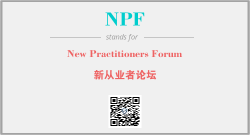 上述内容是“New Practitioners Forum”作为“NPF”的缩写,解释为“新从业者论坛”时的信息,以及英文缩略词NPF所代表的英文单词,其对应的中文拼音、详细解释以及在英文中的流行度和相关分类、应用领域及应用示例等。