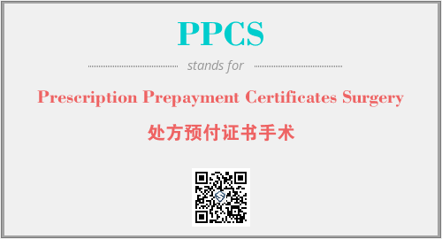 以上为Prescription Prepayment Certificates Surgery英文缩略词PPCS的中文解释,以及该英文缩写在英语的流行度、分类和应用领域方面的信息。