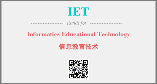 英文缩略词“IET”经常作为“Informatics Educational Technology”的英文缩写来使用,中文表示:“信息教育技术”。本文将详细介绍英文缩写词IET所代表英文单词,其对应的中文拼音、详细解释以及在英语中的流行度。此外,还有关于缩略词IET的分类、应用领域及相关应用示例等。
