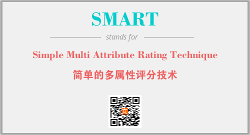 上述内容是“Simple Multi Attribute Rating Technique”作为“SMART”的缩写,解释为“简单的多属性评分技术”时的信息,以及英文缩略词SMART所代表的英文单词,其对应的中文拼音、详细解释以及在英文中的流行度和相关分类、应用领域及应用示例等。