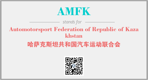 上述内容是“Automotorsport Federation of Republic of Kazakhstan”作为“AMFK”的缩写,解释为“哈萨克斯坦共和国汽车运动联合会”时的信息,以及英文缩略词AMFK所代表的英文单词,其对应的中文拼音、详细解释以及在英文中的流行度和相关分类、应用领域及应用示例等。