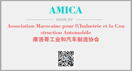 英文缩略词“AMICA”经常作为“Association Marocaine pour l\'Industrie et la Construction Automobile”的英文缩写来使用,中文表示:“摩洛哥工业和汽车制造协会”。本文将详细介绍英文缩写词AMICA所代表英文单词,其对应的中文拼音、详细解释以及在英语中的流行度。此外,还有关于缩略词AMICA的分类、应用领域及相关应用示例等。