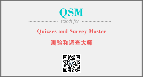 英文缩略词“QSM”经常作为“Quizzes and Survey Master”的英文缩写来使用,中文表示:“测验和调查大师”。本文将详细介绍英文缩写词QSM所代表英文单词,其对应的中文拼音、详细解释以及在英语中的流行度。此外,还有关于缩略词QSM的分类、应用领域及相关应用示例等。