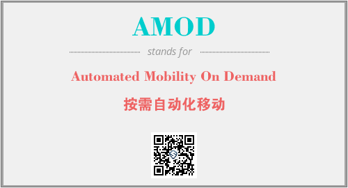 英文缩略词“AMOD”经常作为“Automated Mobility On Demand”的英文缩写来使用,中文表示:“按需自动化移动”。本文将详细介绍英文缩写词AMOD所代表英文单词,其对应的中文拼音、详细解释以及在英语中的流行度。此外,还有关于缩略词AMOD的分类、应用领域及相关应用示例等。