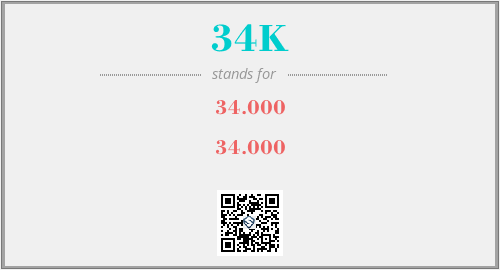 英文缩略词“34K”经常作为“34.000”的英文缩写来使用,中文表示:“34.000”。本文将详细介绍英文缩写词34K所代表英文单词,其对应的中文拼音、详细解释以及在英语中的流行度。此外,还有关于缩略词34K的分类、应用领域及相关应用示例等。