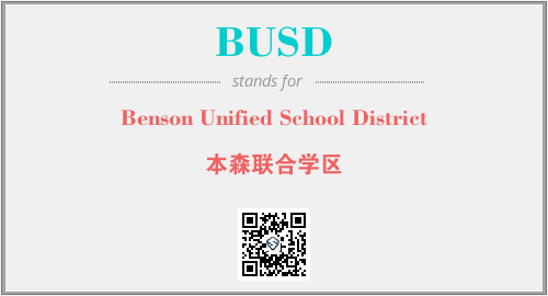 上述内容是“Benson Unified School District”作为“BUSD”的缩写,解释为“本森联合学区”时的信息,以及英文缩略词BUSD所代表的英文单词,其对应的中文拼音、详细解释以及在英文中的流行度和相关分类、应用领域及应用示例等。