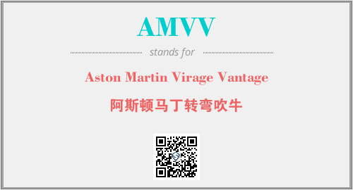 以上为Aston Martin Virage Vantage英文缩略词AMVV的中文解释,以及该英文缩写在英语的流行度、分类和应用领域方面的信息。