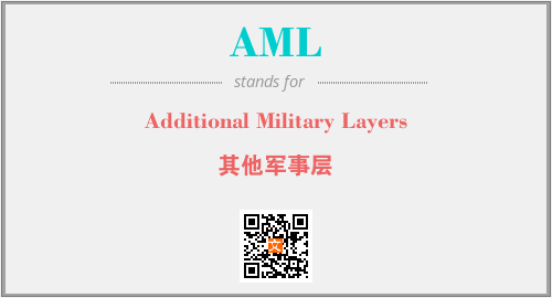 英文缩略词“AML”经常作为“Additional Military Layers”的英文缩写来使用,中文表示:“其他军事层”。本文将详细介绍英文缩写词AML所代表英文单词,其对应的中文拼音、详细解释以及在英语中的流行度。此外,还有关于缩略词AML的分类、应用领域及相关应用示例等。